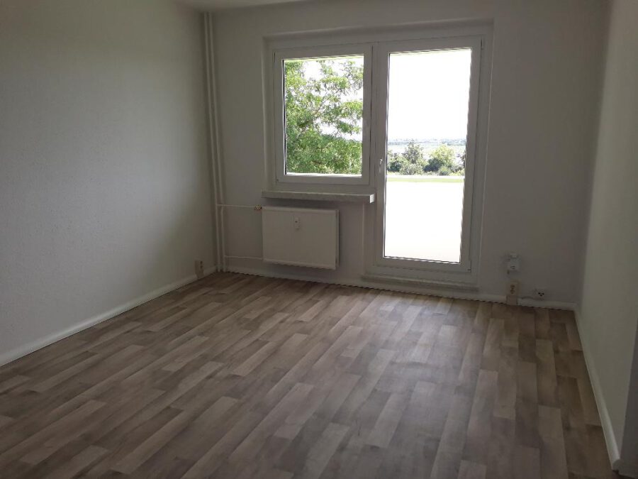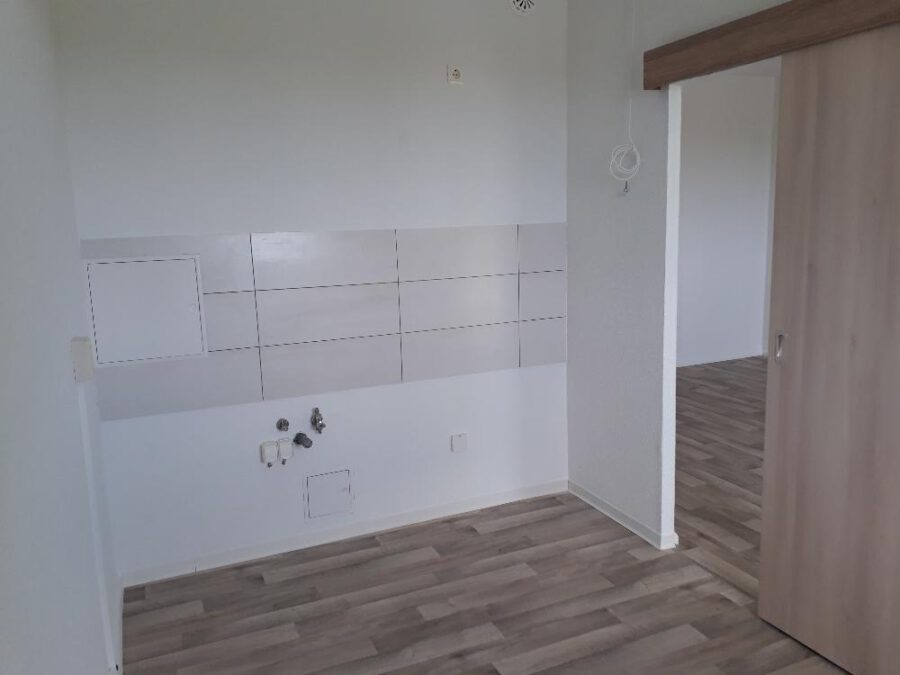 Vom Flur aus sind das Bad, Kinder-, Schlaf- und Wohnzimmer begehbar. Die Küche erreichen Sie vom Wohnzimmer aus. In der Küche kann man eine Essecke integrieren. Die Waschmaschine kann im Bad (nur Toplader) oder in der Küche untergebracht werden. Der Flur ist großzügig und kann abgeteilt werden. So hat man eine Abstellmöglichkeit in der Wohnung. Vom Wohnzimmer aus gehen Sie auf den Balkon und genießen die Fernsicht. Der Balkon liegt auf der Südseite.