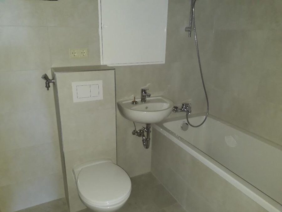 Die Wohnung wird derzeit renoviert. Es werden die Fliesen, das Badsanitär, die Fußbodenbeläge, die Türen, die Elektrik und die Tapeten erneuert.